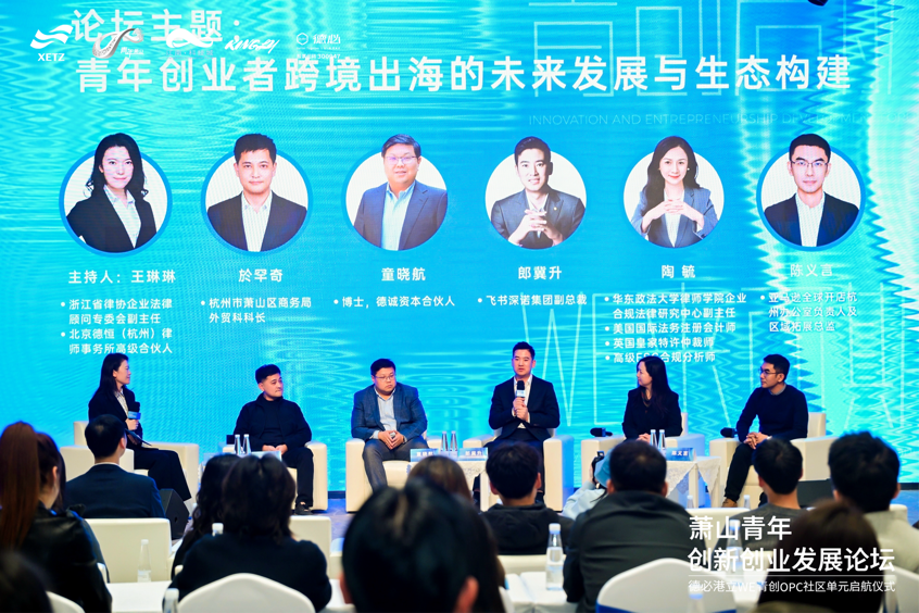 在“青年未来逐梦”圆桌论坛上,由北京德恒律师事务所(杭州)高级合伙人王琳琳主持,萧山区商务局外贸科科长於罕奇、德诚资本合伙人童晓航博士、飞书深诺集团副总裁郎冀升、华东政法大学陶毓主任、亚马逊全球开店杭州办公室负责人陈义言等各界大咖齐聚,围绕“青年创业者跨境出海的未来发展与生态构建” 深入交流。嘉宾们聚焦创新出海、合规风控、产学研协同、全球化布局等关键议题,分享前沿趋势、解读实操路径、破解发展难题,为青年企业拓展国际市场,提供了务实指引与智力支持,为萧山青年创新创业链接更广阔的发展资源。