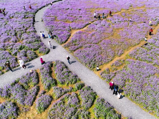 花海还悄悄改变着周边居民的生活方式:盛放的二月兰成为附近居民饭后散步的新去处;志愿者们利用休息时间在这里维持秩序,提醒游客爱护花草、清理垃圾,用自己的行动守护“家门口”的浪漫风景。居民对社区、对家乡的归属感,在这个过程中悄然提升。