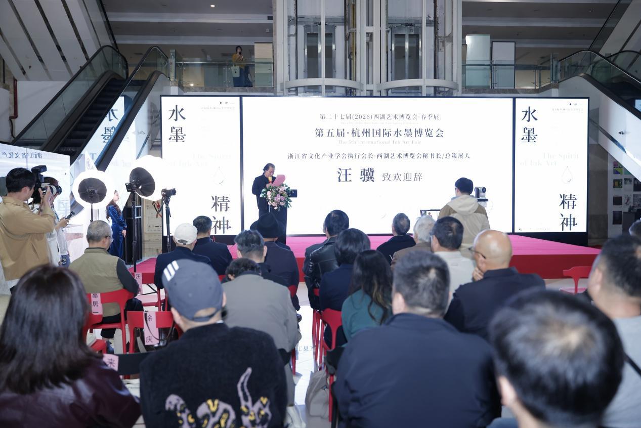 开幕式现场群贤毕至,来自各地的收藏家、艺术家及学者汇聚一堂。西湖艺术博览会秘书长、总策展人汪骥首先致欢迎辞,随后第五届·杭州国际水墨博览会联合策展人侯昌恒、中国美术学院教授单增分别致辞。独立艺术家姚兴文代表个人项目发言,浙江省文联原党组书记田宇原致答谢辞。在浙江省人民政府原副省长陈加元的宣布声中,七位嘉宾共同移步主席台,见证“第五届·杭州国际水墨博览会”开启新的展程。