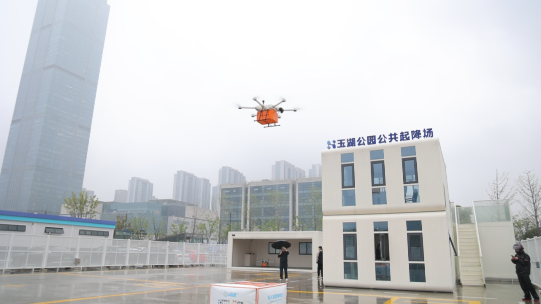 作为该航线的关键节点,玉湖公共起降场由杭州低空产业发展有限公司建设运营,占地约1000平方米,包含4个起降单元、1个应急起降点和飞行配套设施,主要服务起飞重量150公斤以下的中小型垂直起降类无人机,可提供起降、充换电、货物装卸分拣等全流程地勤服务。