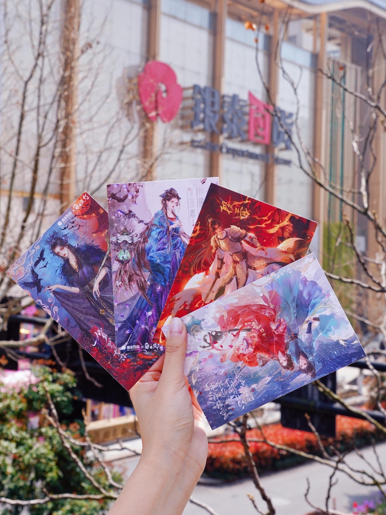 银泰百货同步推出多款《白日提灯》主题联名周边,包括「叠影成契」手幅、「提灯执剑」明信片盲袋、「无嗅寻香」定制香片、「提灯绘卷」亚克力桌面屏风及联名礼袋等,双人限定明信片更是收获粉丝“美到失语”的好评。