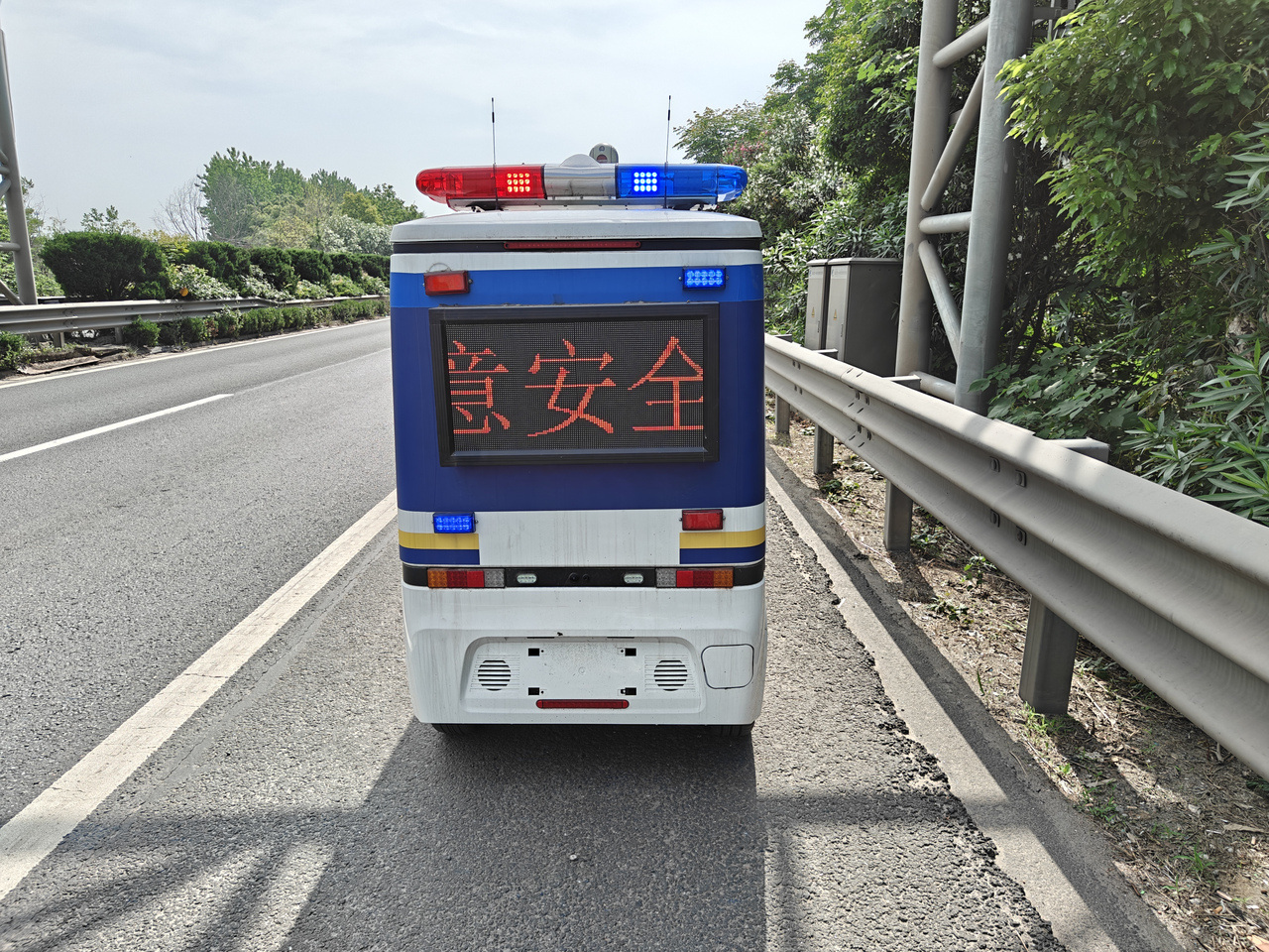 在假期车流量较大的杭州公安交管支队高速辖区重点路段,新型无人巡逻车正式“上岗”。这些蓝白相间的车辆搭载智能驾驶系统,既可自主巡逻,也能由综合勤务室远程接管。车身配备雷达与高清摄像头,实现360度无死角感知,违停、行人闯入、抛锚、抛洒等异常情况自动识别、秒级回传。同时配备爆闪灯、LED屏和定向喊话器,通过三重方式动态引导车流。车内还备有急救包、灭火器、维修工具等应急物资,化身高速“移动服务站”。