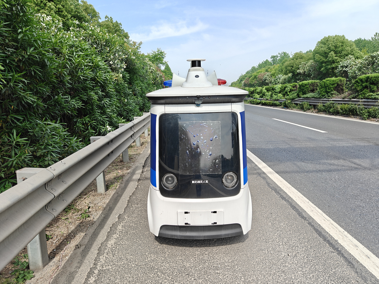 4月4日上午,无人车路面巡查G2504杭州绕城南线萧山南至义桥,无人车正面。袁帅枫 摄