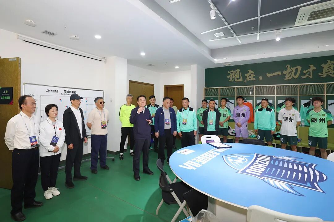 赛前,市委书记陈浩等来到球场外的市集,了解以比赛促消费情况。随后,陈浩走进湖州队休息室,看望慰问运动员、教练员及其他工作人员,为大家加油鼓劲,希望球员们在场上奋勇拼搏,展现体育精神,争取好成绩,为湖州增光,为城市添彩。
