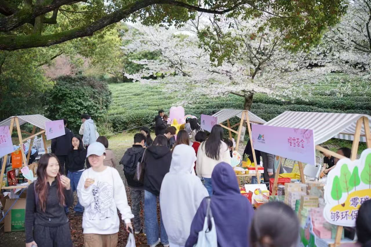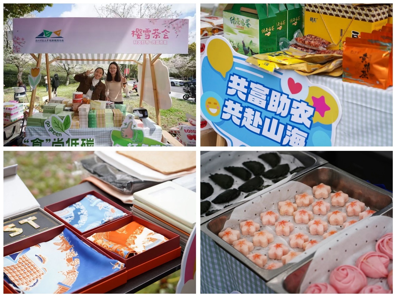 春风拂过和山,樱雪飘落茶园。4月1日,浙江科技大学首届樱雪茶会暨科大好市共富市集在校内樱雪茶园温情启幕。