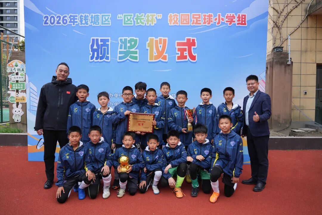春风送暖,活力飞扬。伴随着一声哨响,“区长杯”校园足球小学男子组决赛正式开赛,足球小将们在绿茵场上奋勇拼搏,灵活的攻防与精准的射门一次次将现场气氛推向高潮,展现出钱塘少年昂扬向上的精神风貌。经过激烈角逐,最终,文海小学将本场冠军收入囊中。颁奖仪式上,优秀运动员、优秀教练员代表及各组别冠军队伍依次领奖,一同见证凝结着汗水与拼搏的光辉荣耀。