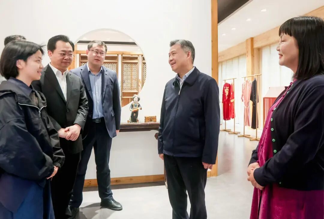 台州刺绣博物馆设有展示厅、体验中心、书坊等功能区,是一处连接传统与现代的活态文化空间。沈铭权边走边看、边听边问,对博物馆“让青年留下来、让展览走出去”的理念给予肯定,勉励年轻的非遗传承人用好数字赋能、手作研学、艺术共创等运营新手段、新模式,吸引更多青年人走进乡村、了解传统,传承创新非遗技能,持续提升历史经典产业的知名度、美誉度。