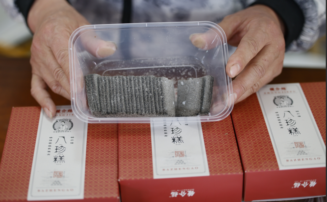 “我们守的不仅是配方,更是‘精益求精、童叟无欺’的店训。”如今的八珍糕传承人是钟介福的店主汝庸庸,他身后是“钟介福”百余年的金字招牌。钟介福一直坚持精选道地药材原料,坚持手工少量制作,确保每一块八珍糕的品质。“在现代化的食品口味环境下,八珍糕通过调整材料力求更好口感,我们将炒焦的山楂与中药材结合,形成了独特的风味。”八珍糕的传承与创新,体现在对健康需求的更深挖掘上。