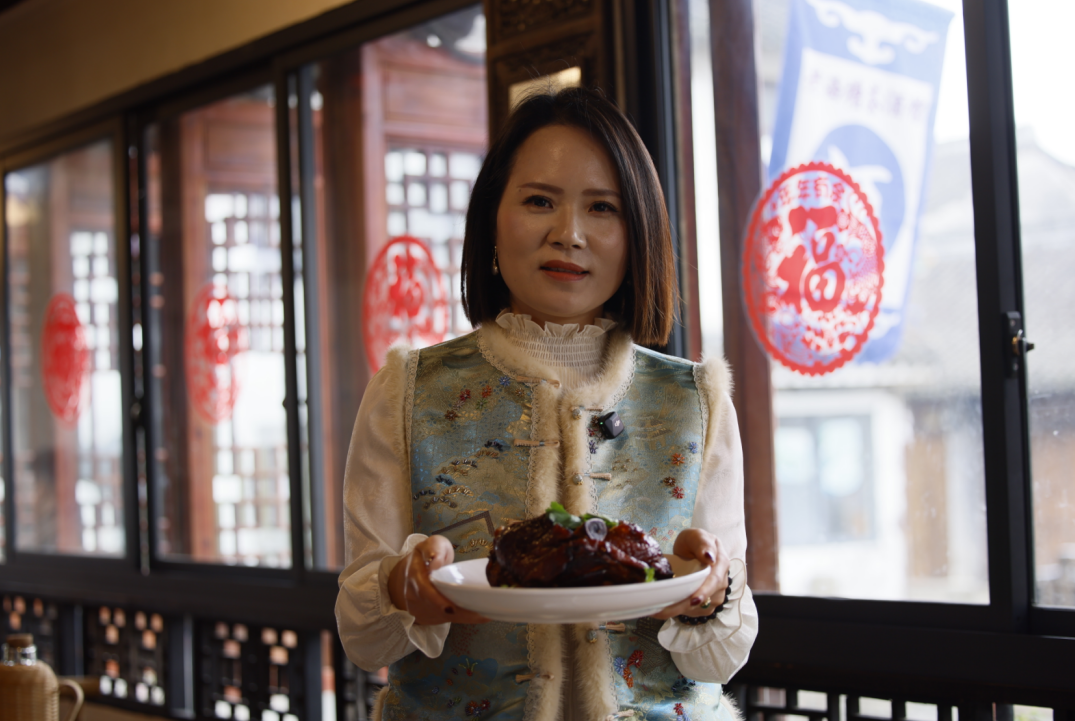 随着生意蒸蒸日上,女儿张春红看到父亲年岁渐长,不忍心他太操劳,又希望把这份手艺传承下去,于是辞去工作与父亲联手干起了蹄膀生意。为了让“送子龙蹄”更上一个台阶,先后申请通过了食品生产认证,注册商标,不断完善企业的管理,并且在恪守古法腌制与炖煮工艺的同时,在包装和食用场景上大胆创新,推出了真空锁鲜包装,让游客便于携带,还设计了造型精致的礼盒,让龙蹄成为体面的伴手礼。“爷爷那辈是挑着担子,谁家有喜事就送上门。现在,我希望能把这份‘福气’送到更远的地方。”作为送子龙蹄第三代传承人,张春红已经通过自己的努力传承,让这份西塘特色的浓情厚意,出现在了天南海北的家庭餐桌上。