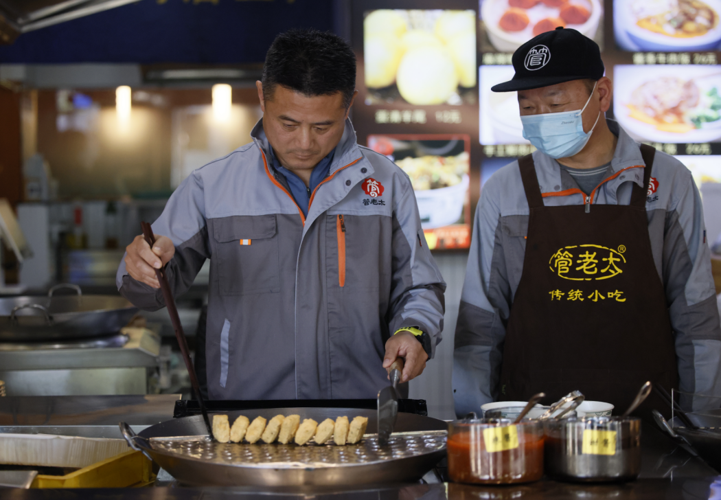 油锅里,当一块块卤好的豆腐轻轻滑入,“滋啦”声瞬间响起,那独特的香味一下子就迎了上来。如今管老太臭豆腐的负责人,已是这项非遗技艺的第三代传承人了,他就是管老太的孙子管剑峰。他说,从祖母手中接过的,不仅是一缸老卤,更是一份沉甸甸的承诺。