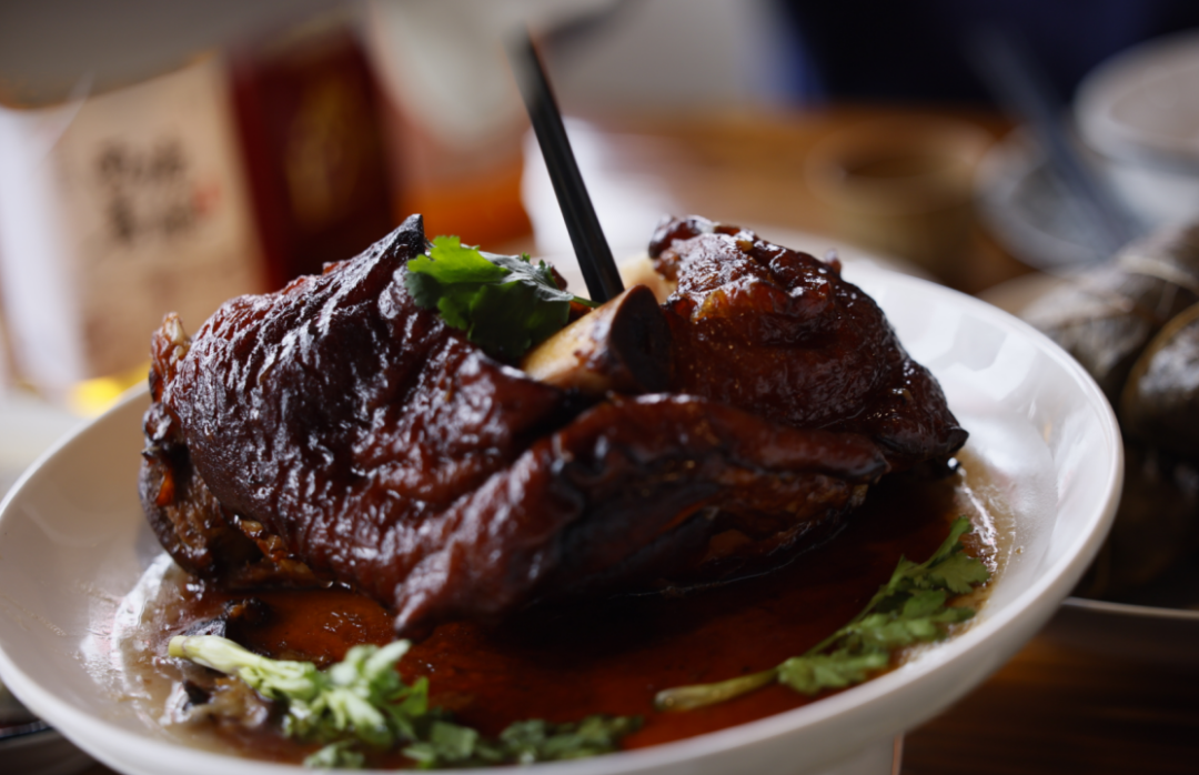 走油蹄膀是嘉善一带的传统菜肴,也是西塘“老底子”的传统美食。“吃龙蹄,讨个好彩头!”这道“送子龙蹄”,不仅是美食,更是寓意吉祥的民俗符号,新婚喜庆或者宴请亲朋,都得上这道菜,象征着团圆和美满。如今,这门寓意与美味并重的手艺也已传至第三代。
