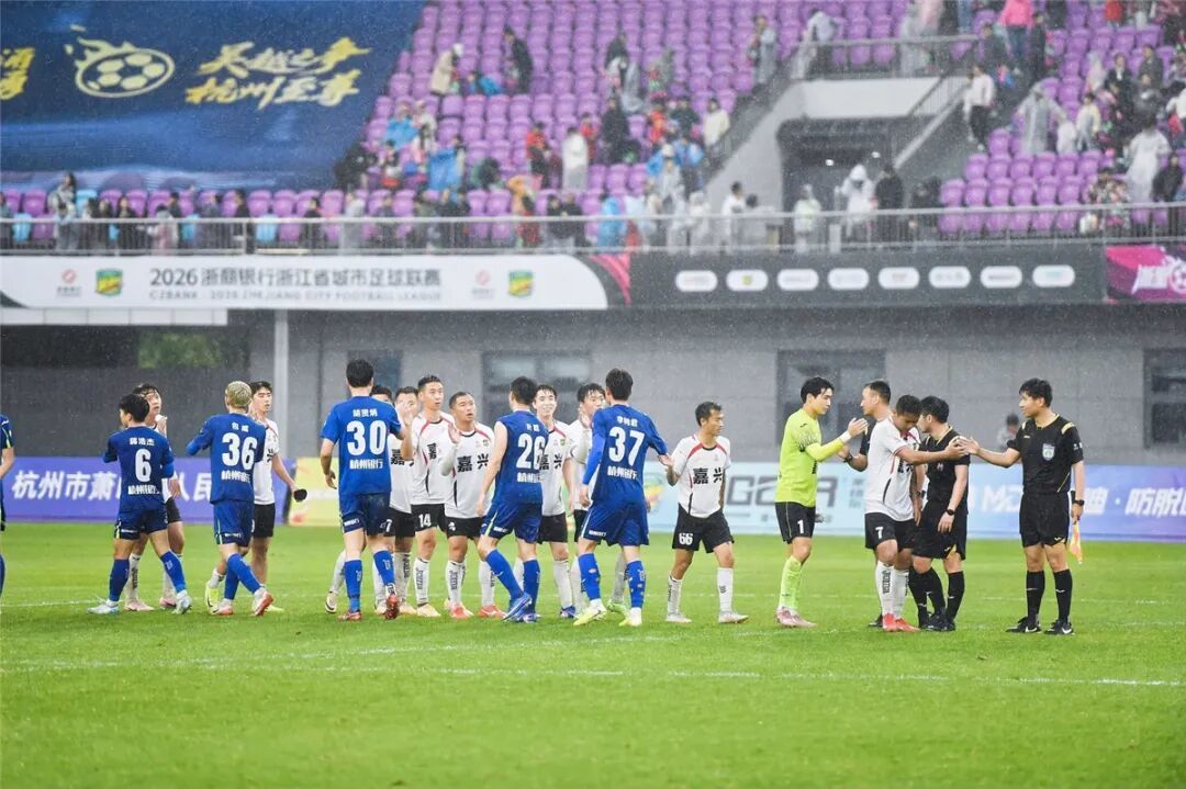今天下午,2026年浙江省城市足球联赛(吴越杯),杭州队坐镇主场萧山体育中心对阵嘉兴队。