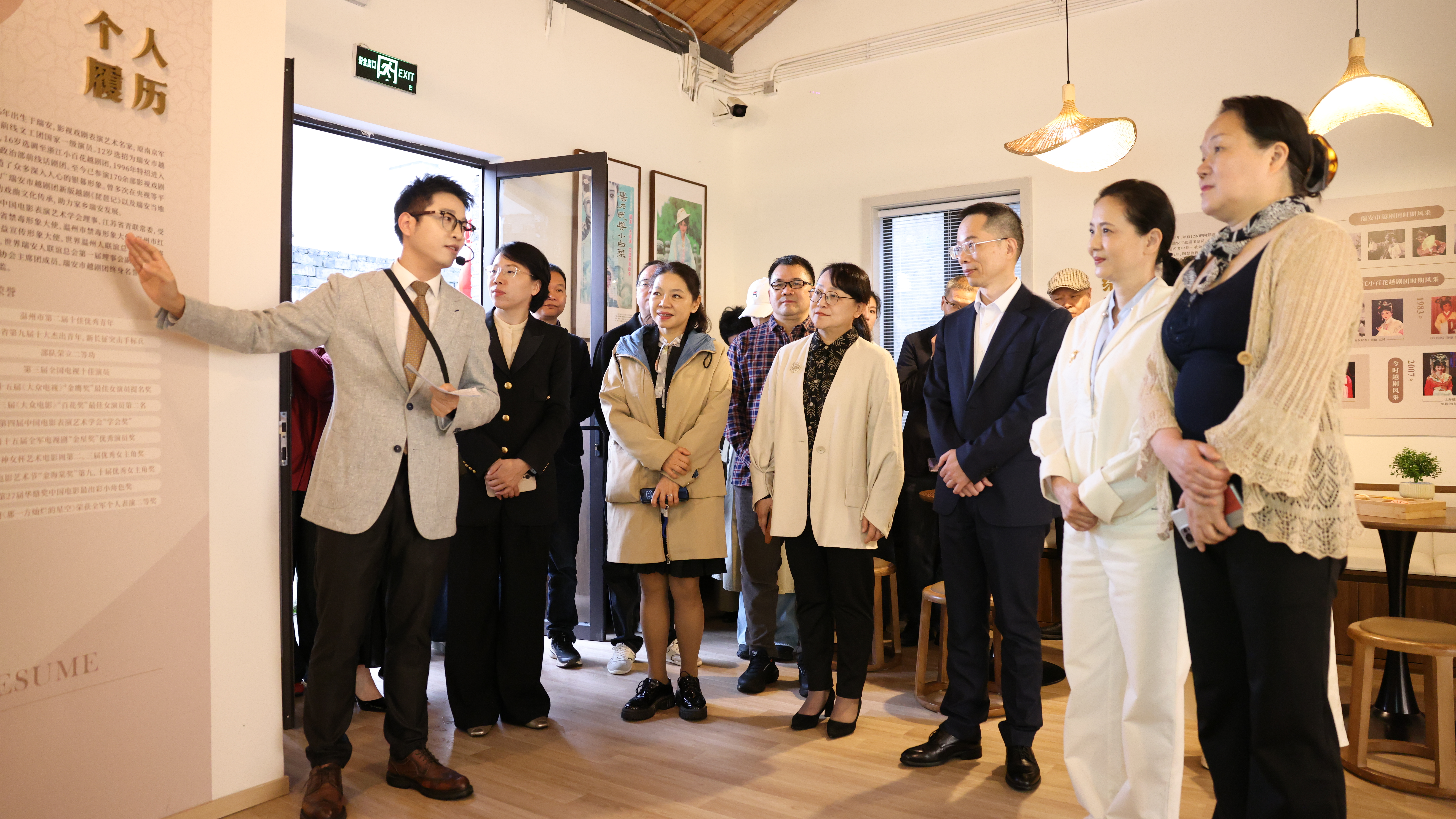 艺术空间展示了陶慧敏的演艺之路:她从瑞安越剧团起步,最终成长为享誉全国的影视戏曲名家。四十余年间,她先后参演170余部影视剧,塑造了诸多经典角色。同时,该空间还介绍了陶慧敏多年来参演公益电影、传播正能量的事迹——她积极投身公益事业,始终关注家乡发展,长期担任浙江省禁毒形象大使、温州市禁毒形象大使、温州儿童友好大使等公益职务,以实际行动践行社会责任。