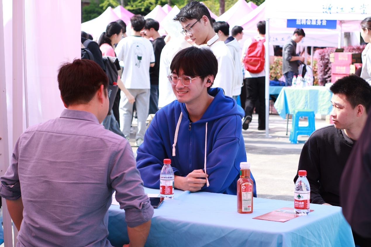 招聘会现场按产业领域和企业类型划分专属展区,共吸引180余家优质企业参会。杭州安恒信息、新华三技术、浙江中控信息、杭州迪普科技、恒生电子、水晶光电、杭州蓝芯机器人、得力集团、浙江泰隆商业银行等行业领军企业悉数到场。衢州、富阳、东莞寮步三地人社部门携本地优质企业组团设展,为学子带来多元化就业选择。