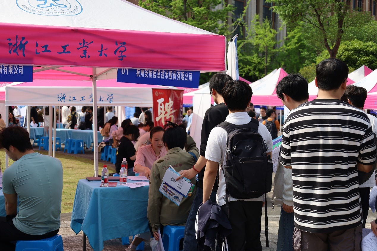 4月10日下午,浙江工业大学“AI+”2026届春季专场招聘会暨2027届实习双选会在屏峰校区顺利举行。本次招聘会由浙工大党委学工部、研工部、校团委联合主办,计算机科学与技术学院(软件学院、人工智能学院)、机械工程学院、信息工程学院、物理与光电学院、数学科学学院共同承办,面向各类“数智+”专业毕业生及2027届实习生,提供涵盖人工智能、智能制造、软件开发等领域的数千个岗位。