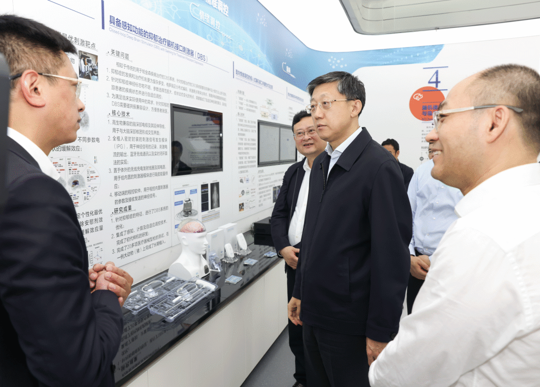 日前,省委常委、市委书记刘非在余杭区专题调研一流创新生态建设推进情况,这是刘非在考察南湖脑机交叉研究院时与科研人员交流。