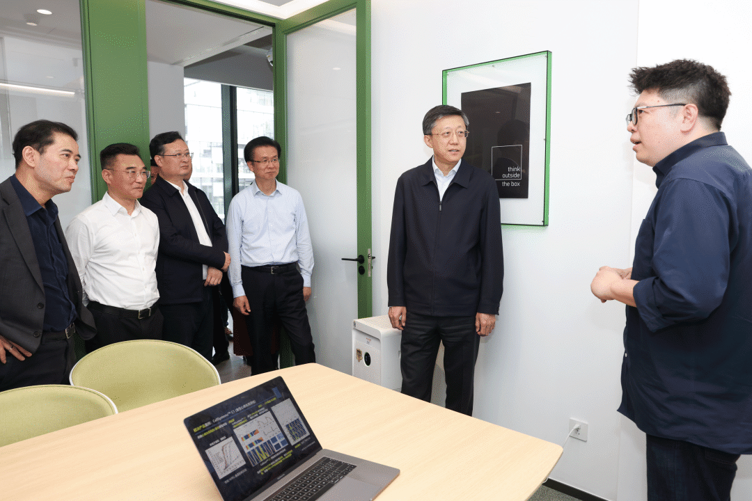 日前,省委常委、市委书记刘非在余杭区专题调研一流创新生态建设推进情况,这是刘非在考察“模域空间”AI+生态创新平台时与创业者交流。