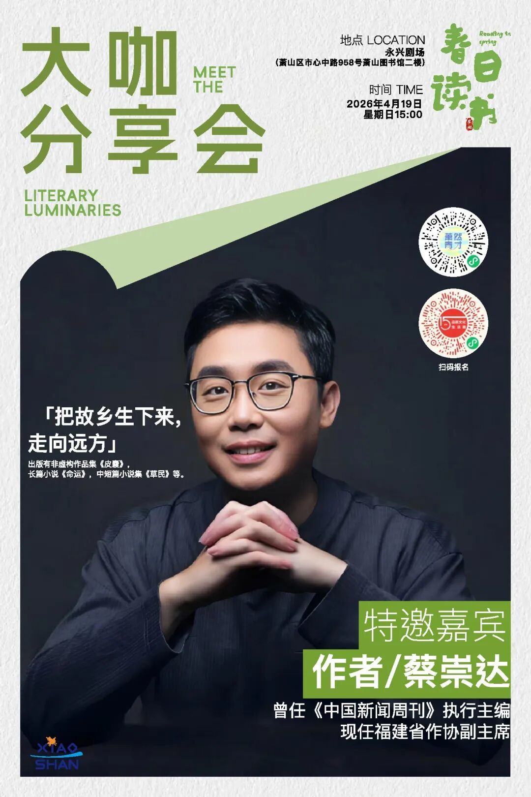 活动地点:萧山图书馆二楼永兴剧场、蜀山青春会客厅