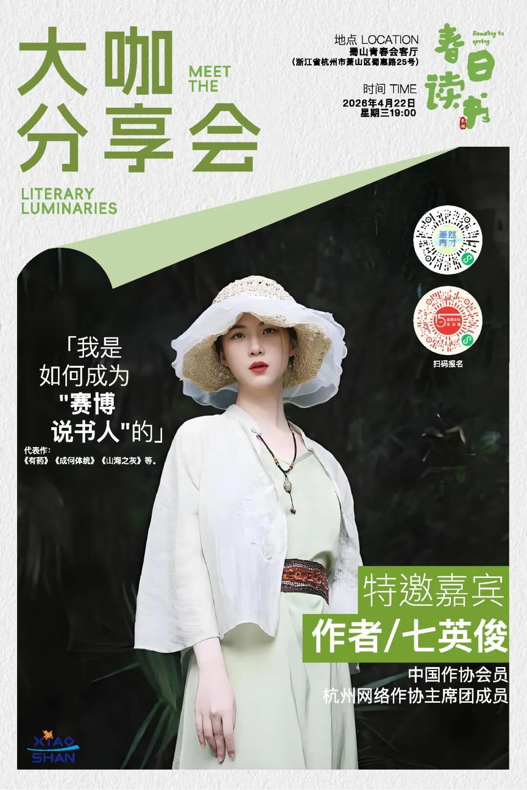活动报名:活动将于4月16日14:00在萧然青才、浙里文化圈双渠道同步开票,扫描上方海报二维码进入报名页面