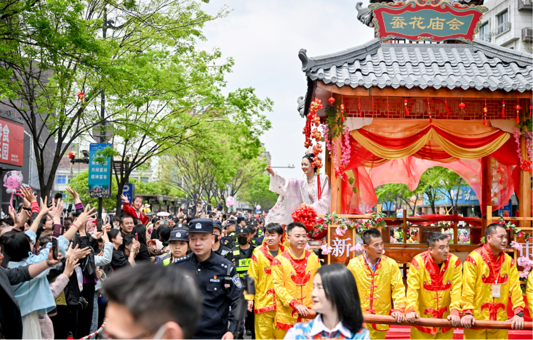 悠悠苕溪水,千年蚕花事。第二十八届新市蚕花庙会刚刚落下帷幕,第二十八届的含山“轧蚕花”民俗文化活动接档上演,在德清、南浔,拜蚕娘、扎蚕花、民俗巡游……这些延续千百年的蚕事盛会,每年吸引数万人踏春而来。