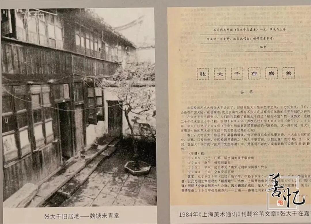 除了本土书画家,1928年,国画大师张大千因一桩画作风波离开上海,客居嘉善魏塘“来青堂”四年有余。居住在嘉善期间,他常去梅花庵拜谒吴镇墓,研习传统画艺,许多画作署注“魏塘来青堂”。