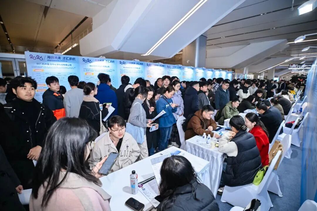 ▲在杭州西站举行的“海创未来 才汇余杭” 2026年余杭区新春综合类人才交流大会