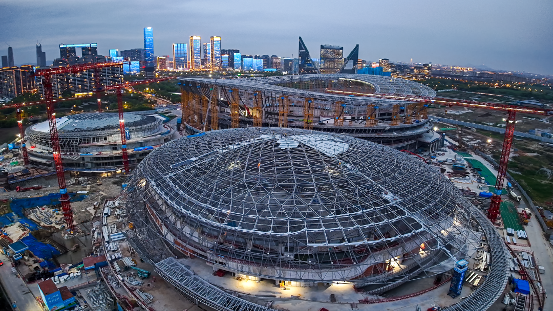 沿着城市中轴线放眼望去,余杭国际体育中心继“一场两馆”屋面钢结构全面合龙后,核心受力体系张拉作业也圆满完成;云门公园开工建设,杭州西站全年到发总客流2776万人次,增长129%;文一西路西延二期、高教路北延等项目全面推进,立体交通网日益完善。