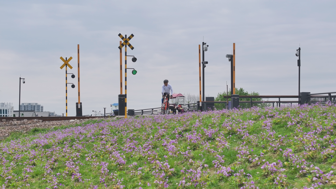 春风拂岸,兰香满塘。这段时间,西险大塘的坝坡上,二月兰进入盛放期。紫色花浪绵延成片,为市民散步遛弯、跑步骑行添了诗意,也为西险大塘这道守护安澜的防洪屏障增添了生态底色。